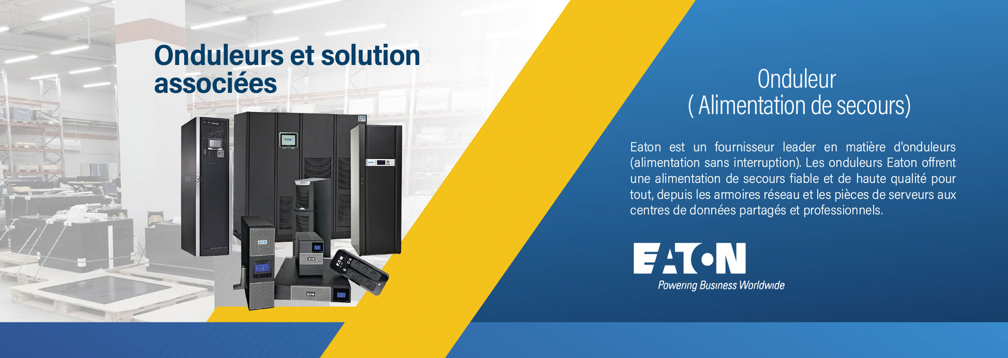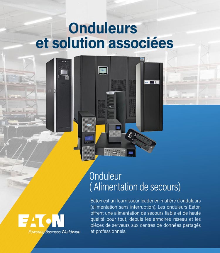 Nos onduleurs Eaton et batteries protègent vos équipements électriques des perturbations et des coupures de courant. Nous offrons également des solutions personnalisées pour répondre à vos besoins spécifiques.